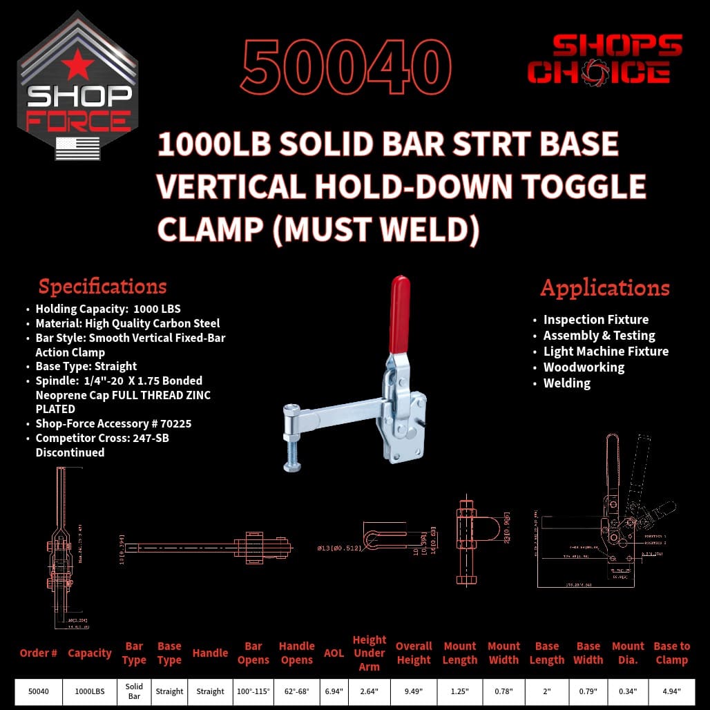 1000LB SOLID BAR STRT BASE VERTICAL HOLD-DOWN TOGGLE CLAMP (MUST WELD) Shop’sChoice™