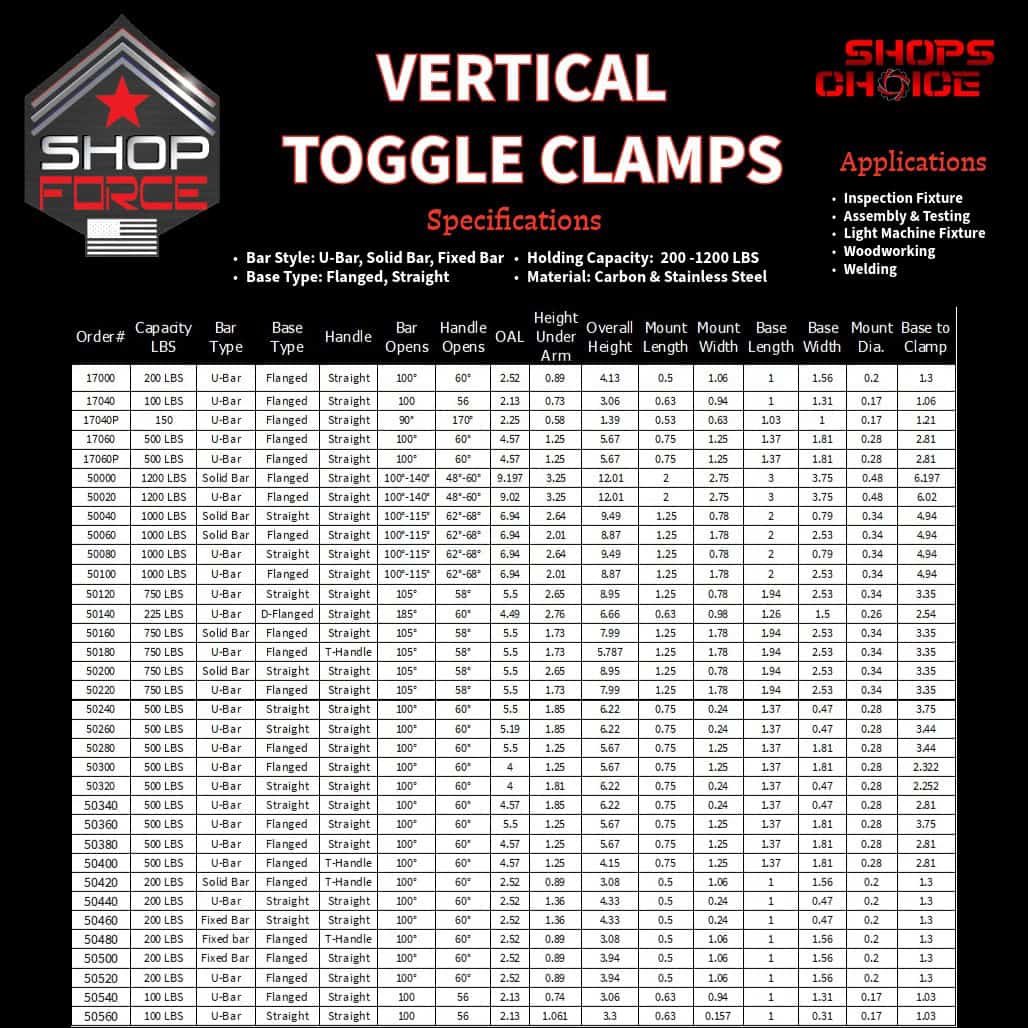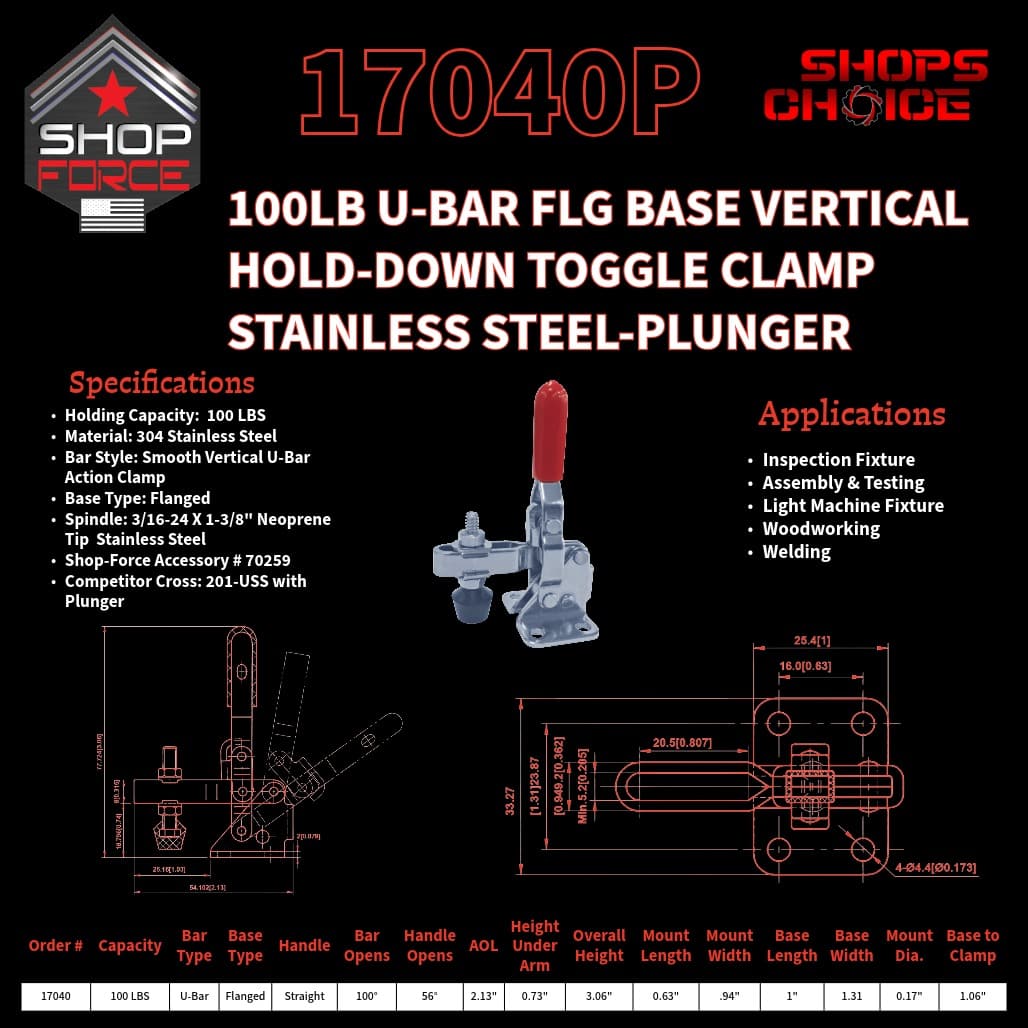 100LB U-BAR FLG BASE VERTICAL HOLD-DOWN TOGGLE CLAMP (PLUNGER) STAINLESS Shop’sChoice™
