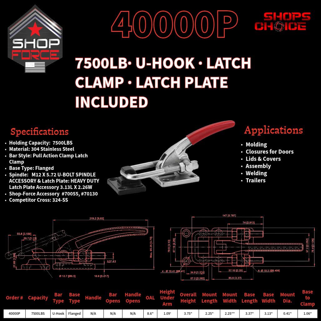 7500lb · U-HOOK · LATCH CLAMP · LATCH PLATE INCLUDED – Shop’sChoice™